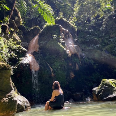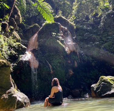 From there, we did hike in Parque da Grená, which leads through the forest to a waterfall and a natural bathing pool. You need to pay but do not skip this. It's one of those places that doesn't make it onto every tourist list but absolutely should. Just know there are no washrooms on the trail — plan accordingly.