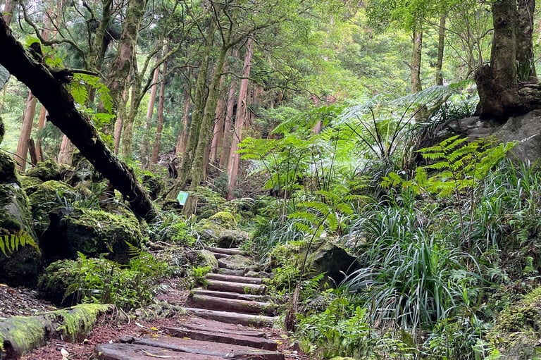 We started with the Salto do Prego hike — a lush, green trail through forest that ends at a waterfall. The vegetation is dense and dripping, almost jungle-like. It's one of the most beautiful hikes on the island. One honest heads up: there are no washrooms anywhere on this trail. Sort that out before you start.